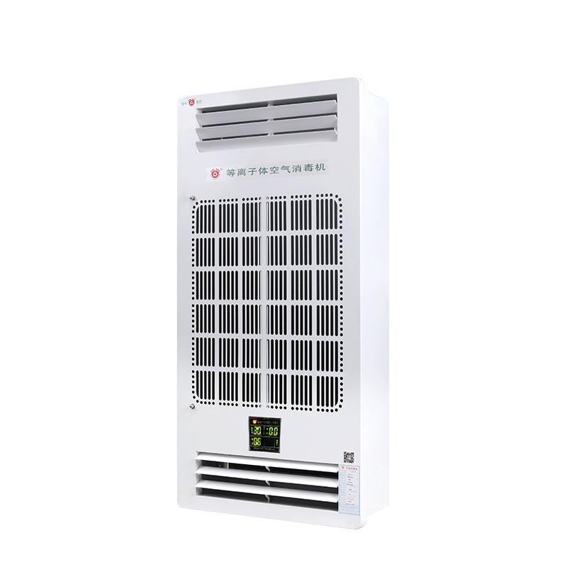 本机采用的等离子模块具备电离区和集尘区,利用等离子电源,在电离区正负电极板形成高压电场产生巨大的能量释放,对进入的空气进行电子轰击,瞬间生产巨大的能量释放,对进入的空气进行电子轰击,瞬间产生大量的负氧离子,当空气中的污染气体进入等离子模块进行电离、催化氧化、分解等物理化学反应,使复杂的大分子污染物转变为简单小分子的安全无机物,有毒有害气体转化成无毒无害的气体,再通过集尘区静电吸附在负极板的表面。由空气循环装置将已净化消毒的空气排放在室内经多次循环净化消毒,对室内空气中的有害微生物和有机化学污染,达到净化、消毒、除异味、提高室内氧气含量的作用。